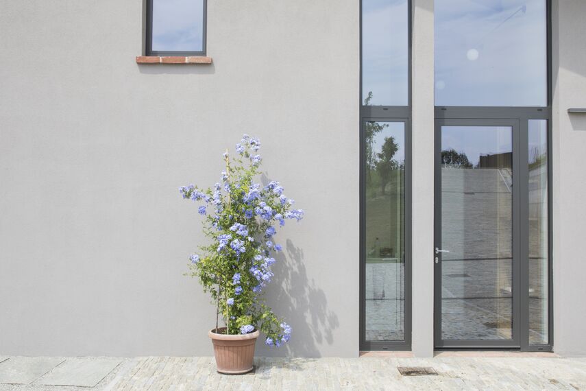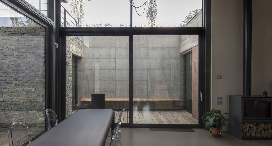 The new transparent volume & egrave; formed by a double-height space that houses the living area and the kitchen and & egrave; was made with the Reynaers aluminum curtain wall system CW 50 with integrated openings: the large sliding doors were created by the partner Reynaers Arese Serramenti using the Reynaers system CP 155 , while for doors and windows with retractable sash & egrave; was chosen CS 77.