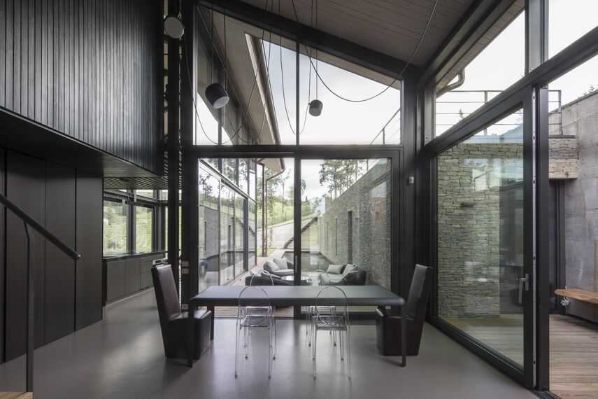 The aim of the architects and owners is; was to try to keep the original stone core by showing it as a sculpture inside the house and making the extension through new transparent volumes so that the landscape became part of the architecture.